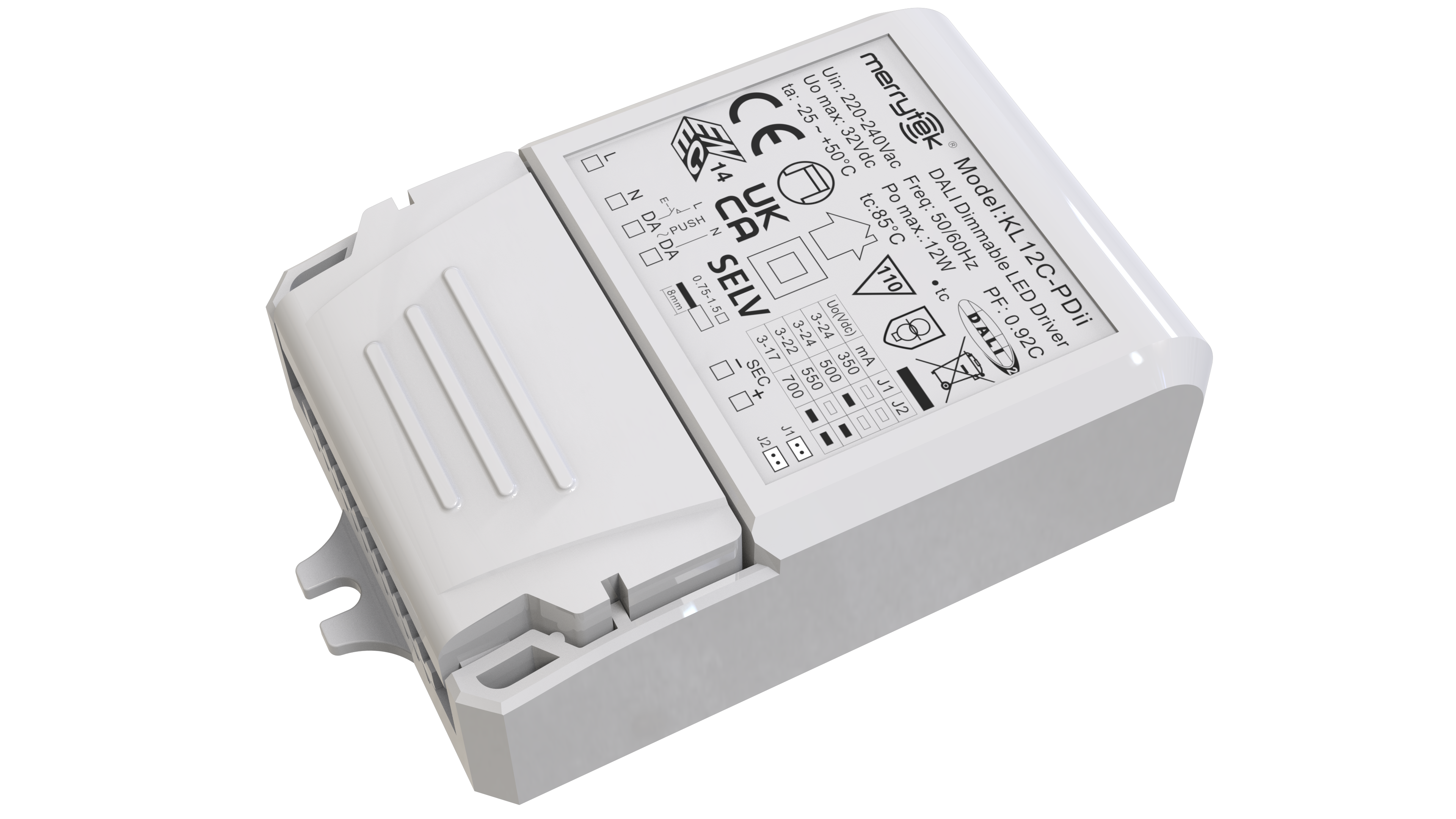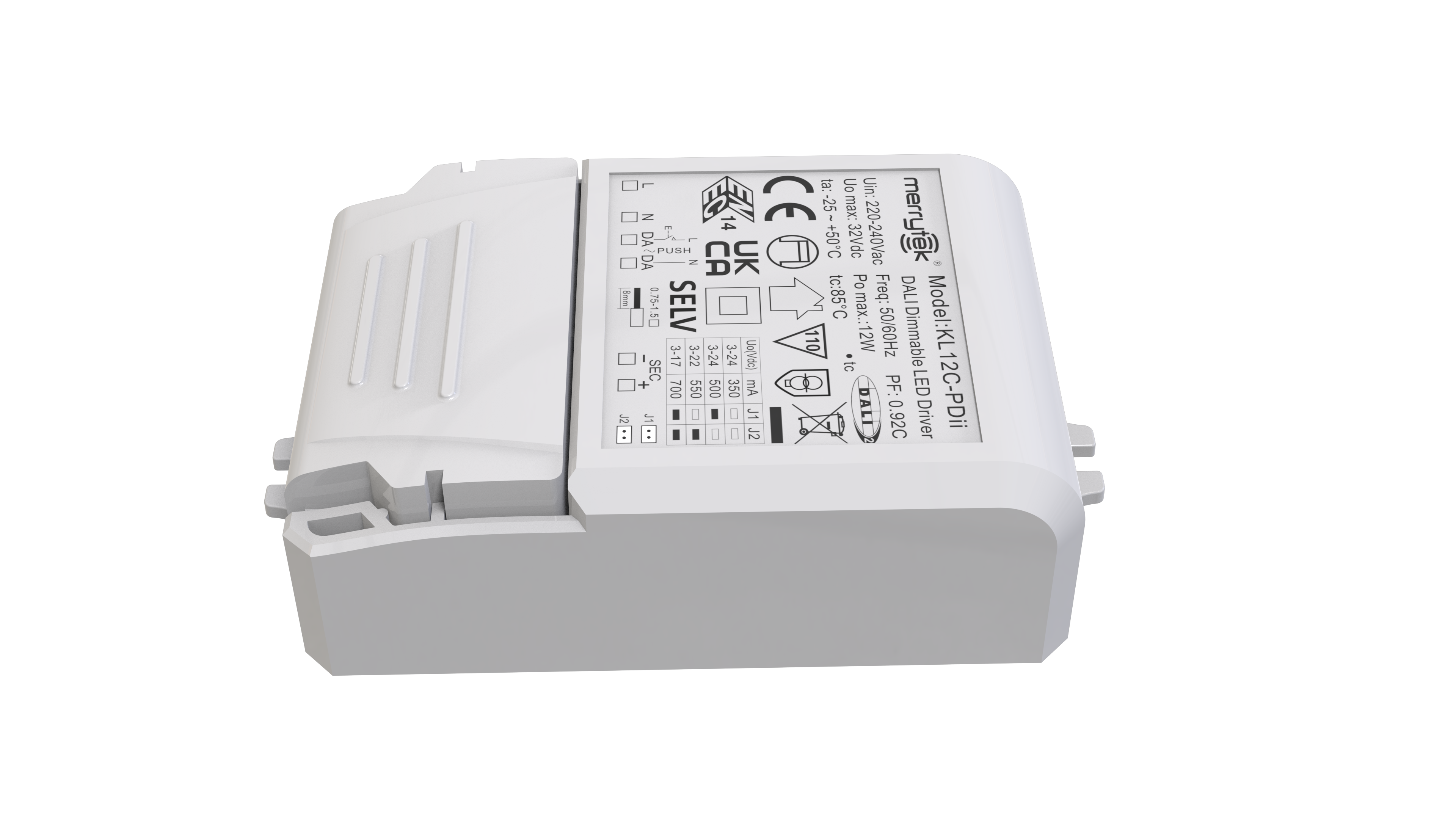 输出电流/电压/功率 | 350mA / 3-24Vdc / 8.4W 500mA / 3-24Vdc / 12W 550mA / 3-22Vdc / 12W 700mA / 3-17Vdc / 12W |